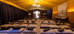 Everything else is provided for your comfort: mats, pillows, blankets, eye masks, and high-vibration 9.5 pH water for your refill.
